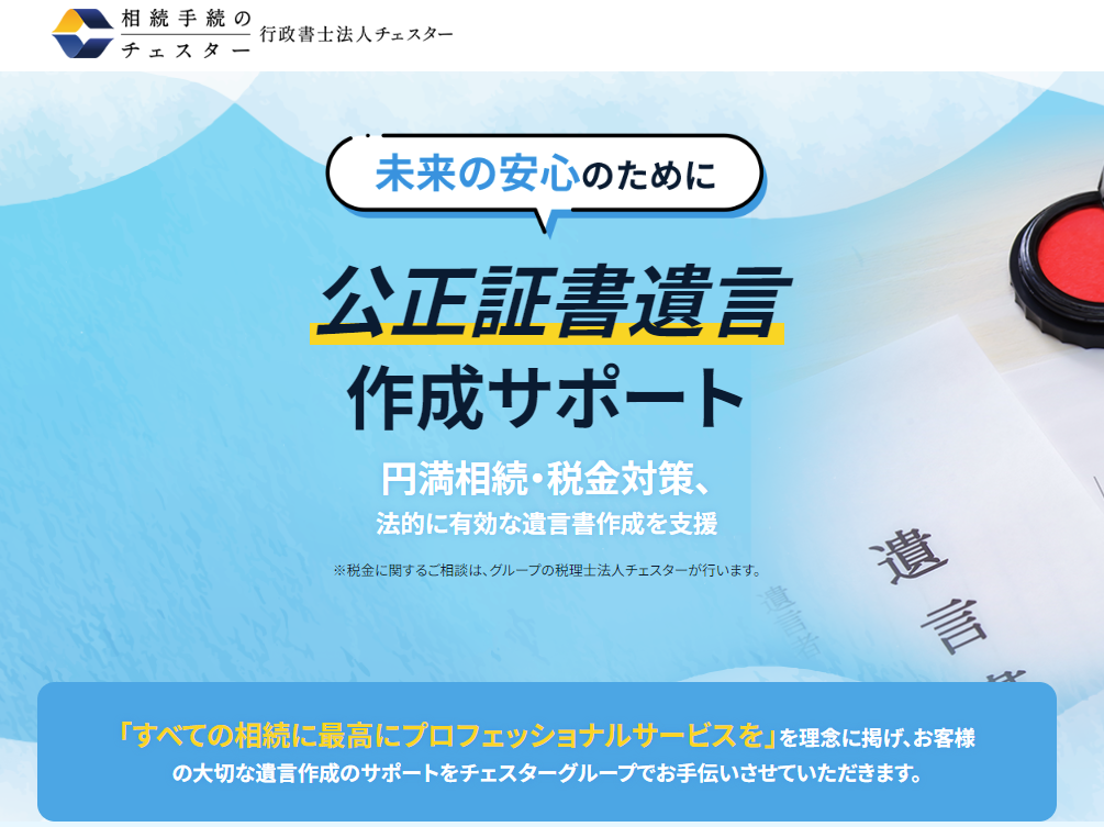 相続専門のチェスター「公正証書遺言作成サポート」HPをリリース