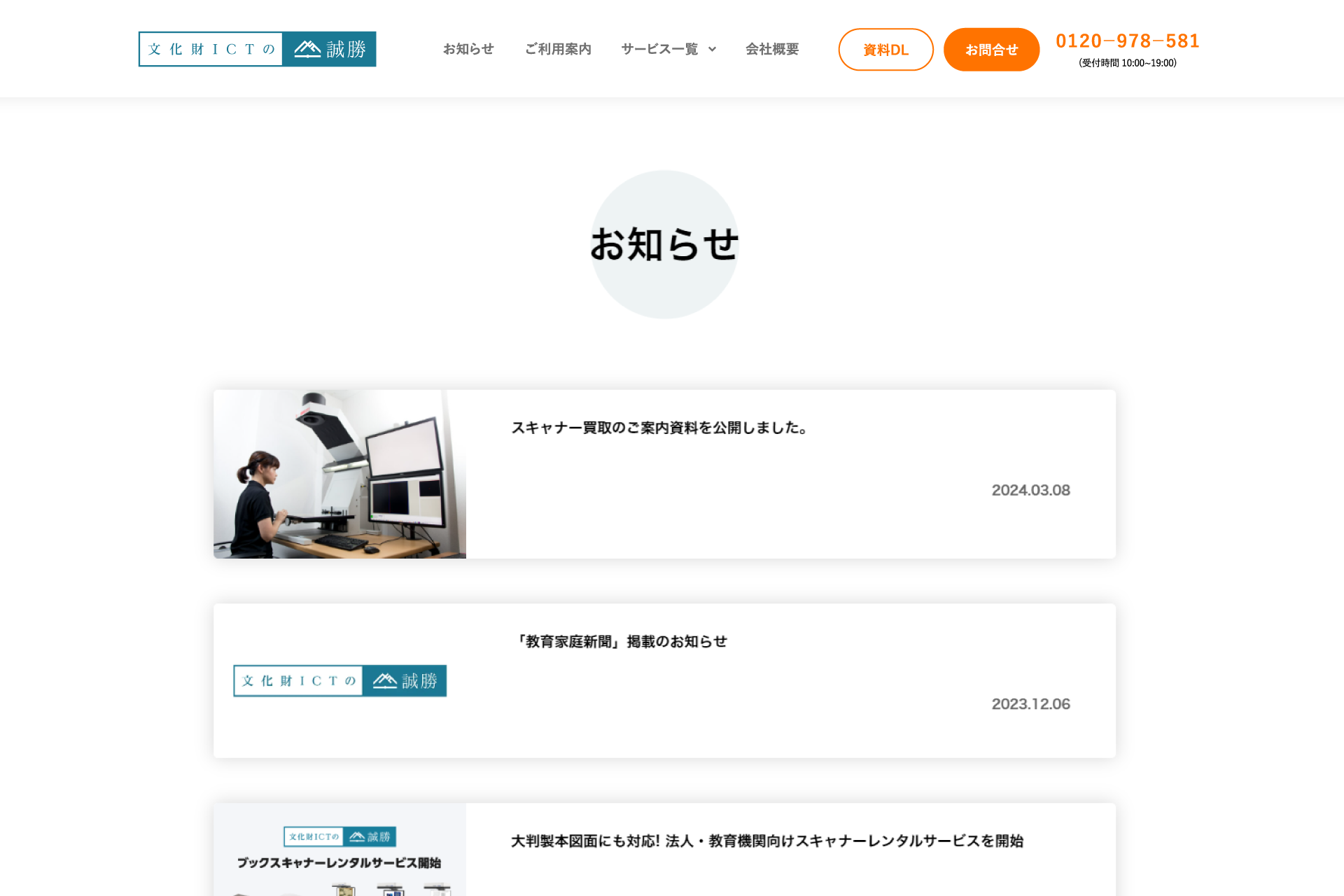 誠勝、デジタルアーカイブ専用スキャナーに関する「お知らせ」ページを公開
