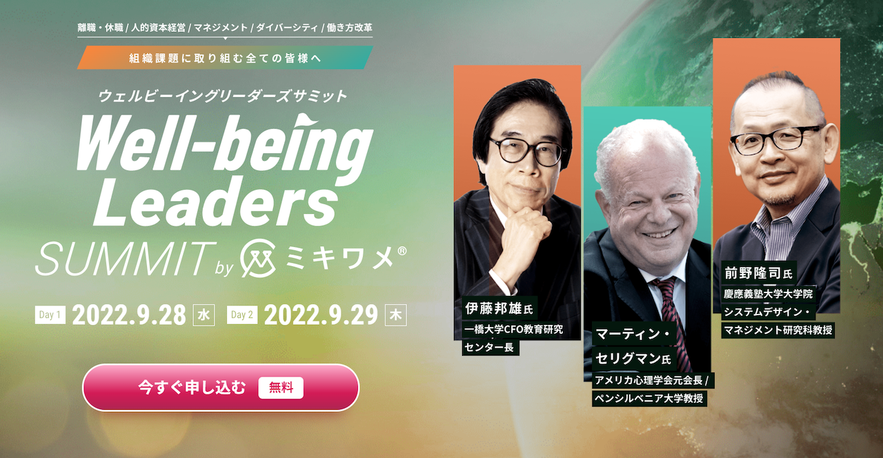 タイトル:ウェルビーイングリーダーズサミット by ミキワメ