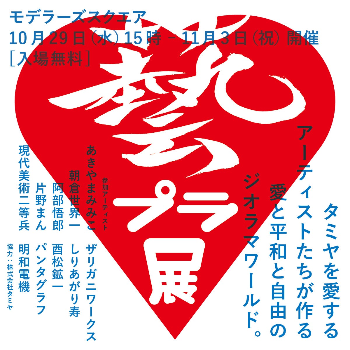 総合模型メーカーの株式会社タミヤ(本社:静岡市・代表取締役社長 田宮信央)は、直営施設「TAMIYA PLAMODEL FACTORY TOKYO(東京都港区・新橋)」にて、タミヤをテーマとした現代アーティストによる合同作品展「藝プラ展」の巡回展を10/29(水)-11/3(月・祝)までの6日間、開催いたしますのでお知らせします。