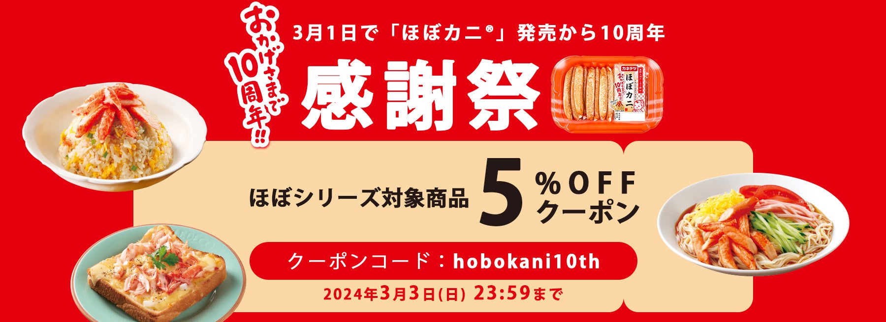 おかげさまで「ほぼカニ®」発売10周年!感謝の気持ちを込めた、盛りだくさんな“ほぼ”企画 第1弾を実施します。