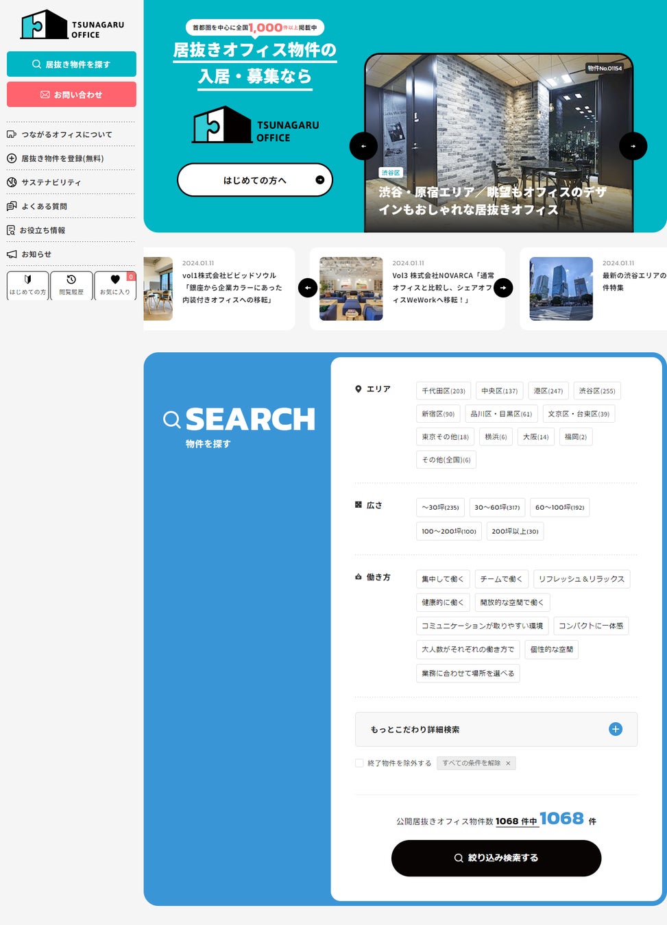 -〈理想の働き方〉から居抜きオフィスを検索- 居抜きオフィス検索サイト「つながるオフィス」をリニューアル