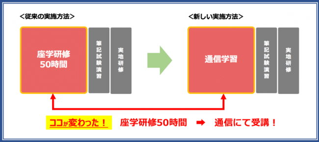 通常、資格を取るとなると通学研修にて50時間の座学研修と筆記試験・演習を行う必要がありますが、