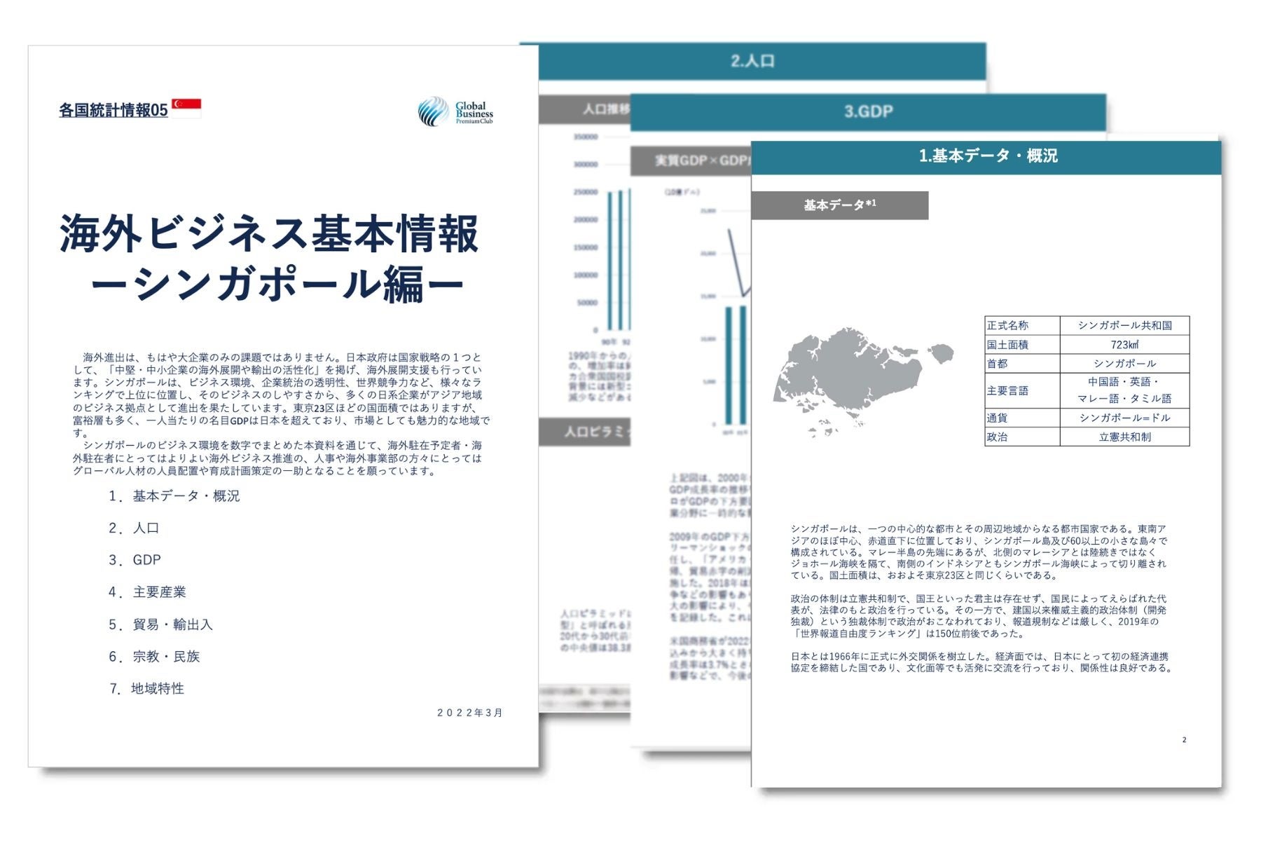 シンガポールのビジネス環境を数字でまとめた本資料を通じて、海外駐在予定者・海外駐在者にとってはよりよい海外ビジネス推進の、人事や海外事業部の方々にとってはグローバル人材の人員配置や育成計画策定の一助となることを願っています。