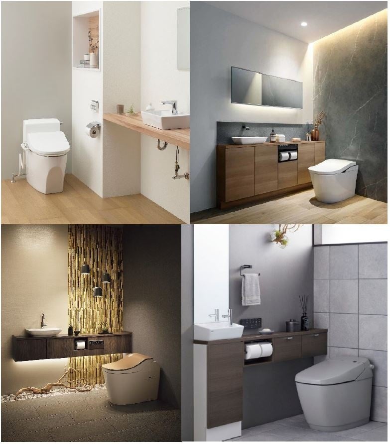 ローシルエット便器は、製品の全高が低く、温水洗浄便座機能がすっきり収まり、デザイン性に優れているといった特徴があります。 便器がスタイリッシュでコンパクトであるため、床や壁、周辺部材とコーディネートすることで、よりスタイリッシュな空間に仕上げることができ、戸建てやマンションのみならず、デザイン性にこだわる店舗やホテルなどでも多く採用されています。