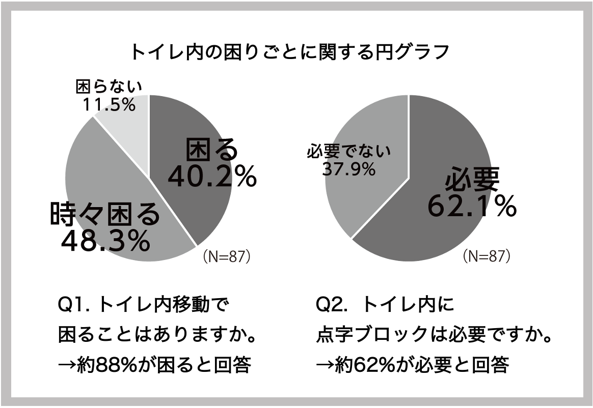 ※1 「移動方法からみた視覚障害者の施設内トイレ利用実態- 視覚障害者のユニバーサルデザイントイレ環境に関する研究 その2 -」/老田智美(大和大学), 田中直人(島根大学), 山崎 達也(錦城護謨), 日本建築学会大会学術講演梗概集, 2021.09