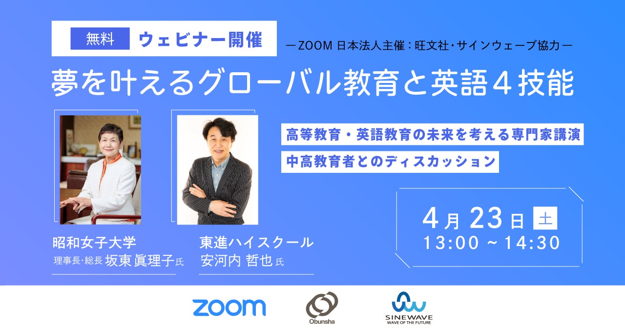 「夢を叶えるグローバル教育と英語4技能」ウェビナーを4/23(土)開催(主催: ZOOM日本法人 / 協力: 旺文社・サインウェーブ )
