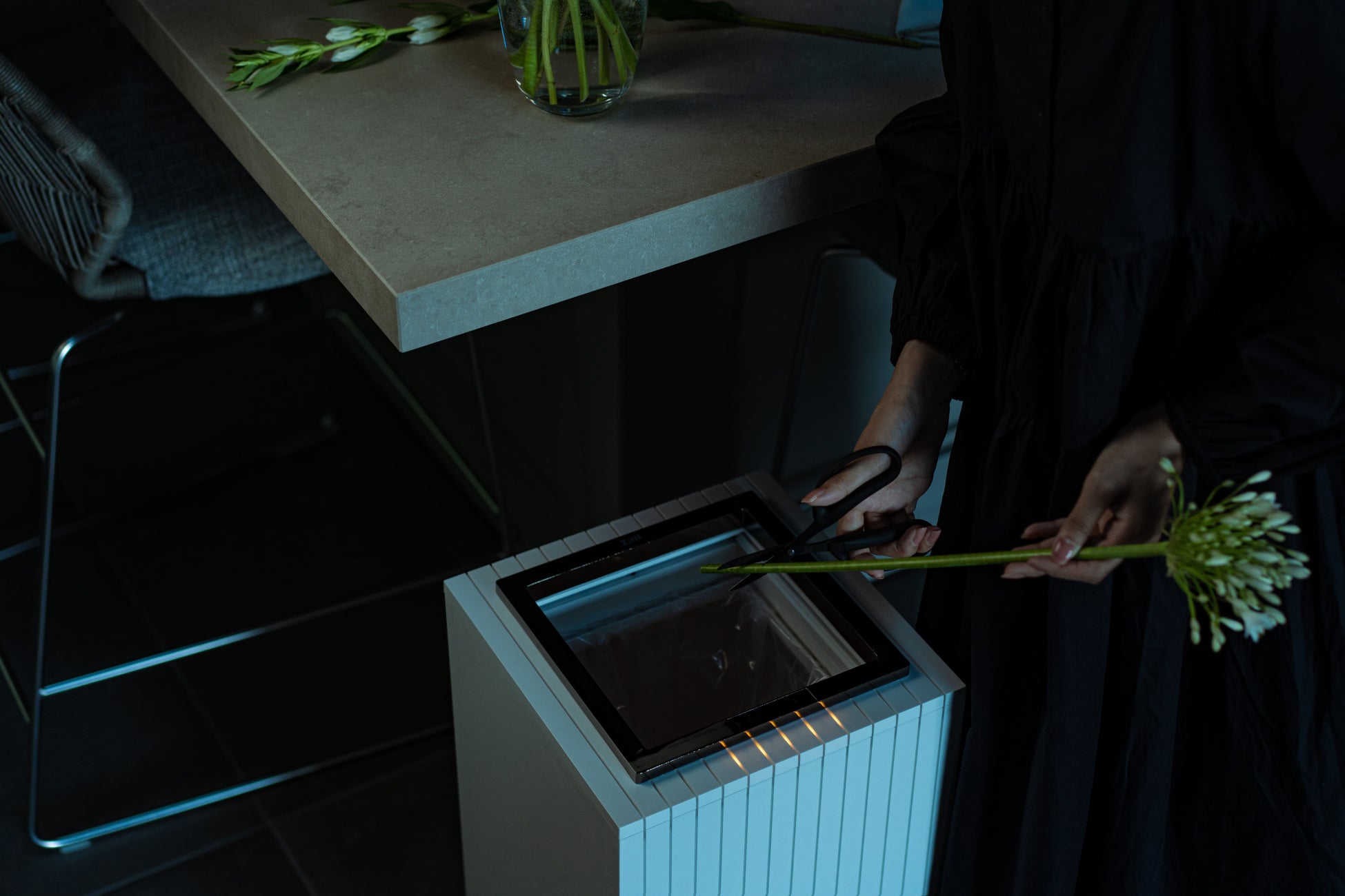 精緻な視覚的美しさに加え、情緒豊かに点灯するLED、高級感のある手触りを重要視したデザインは、まさに新しいゴミ箱です。さらに、徹底したニオイ対策、フタ開閉時間の短縮やセンサー感知範囲の調整機能など、毎日使う道具としての使い勝手の良さも追求しました。