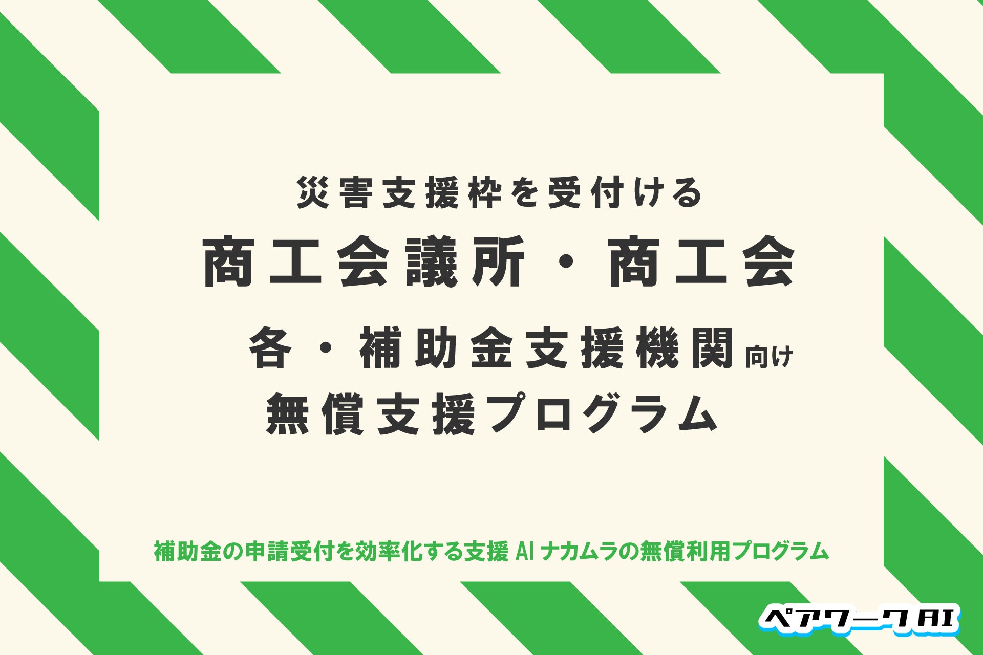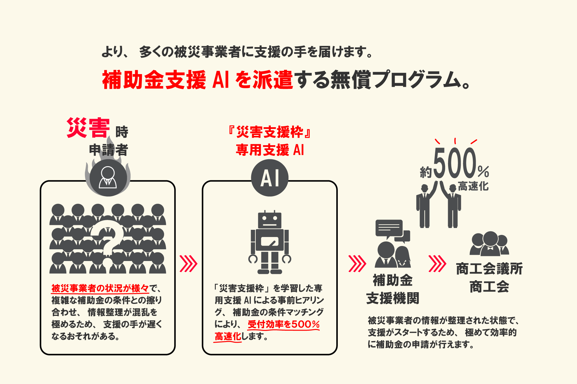 <災害支援枠>サポートAIを無償派遣。商工会議所・商工会に向けて、申請相談を効率的に受付する専用AIを無償派遣するプログラムがスタート。