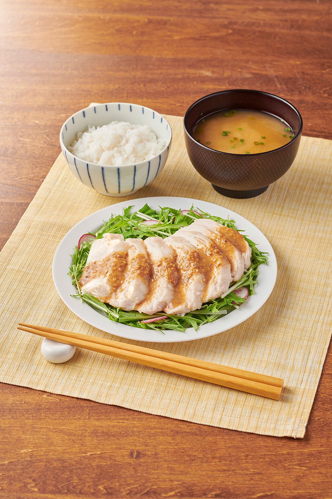 国産大根おろしを使用。しょうゆをベースにカツオと昆布の和風だしを効かせ、レモン果汁と玄米黒酢を隠し味に使いました。