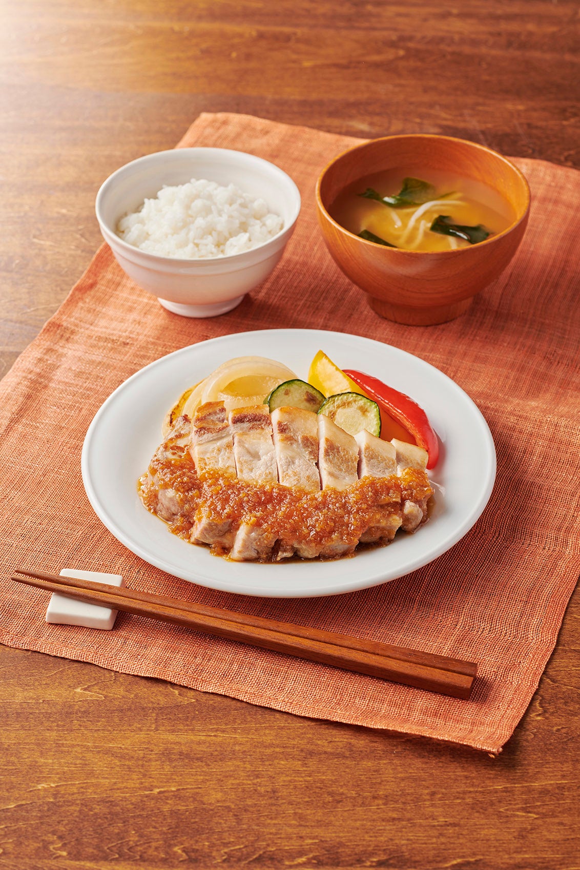 国産おろしタマネギのさっぱりとした風味と、オニオンソテーのコクのある味わいに、かつお節と昆布のうまみを合わせました。