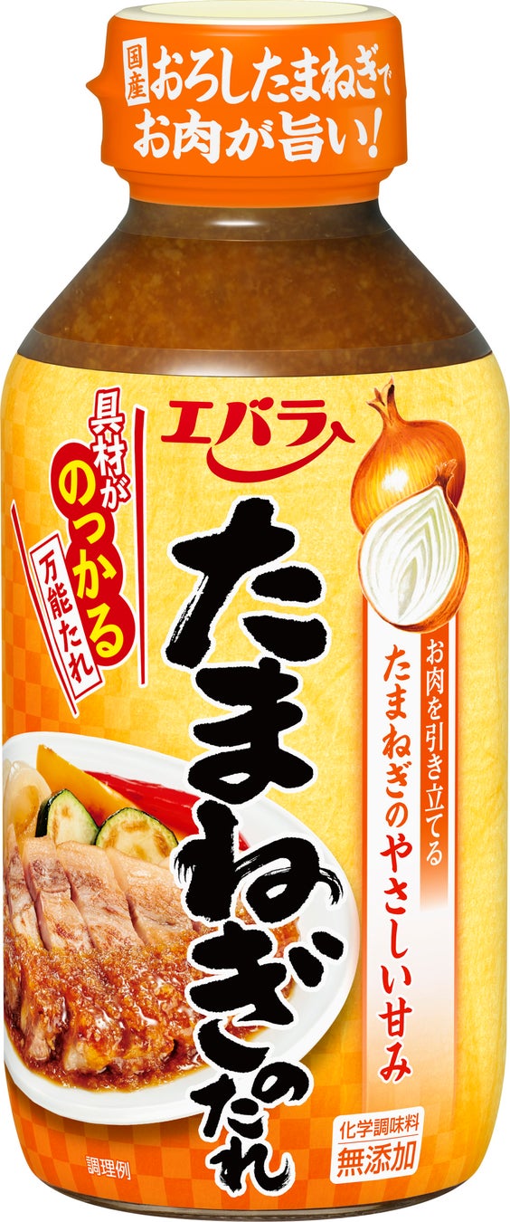「たまねぎのたれ」は国産のすりおろしタマネギと、オニオンソテーに、かつお節と昆布のうまみを加えたコク深い味わいです。酸味や甘み、コクのバランスを調整し、柑橘の味わいを引き立てることで、すっきりとした甘みを実現しました。ポークソテーやサラダなど料理をさっぱりと楽しみたいときにおすすめです。