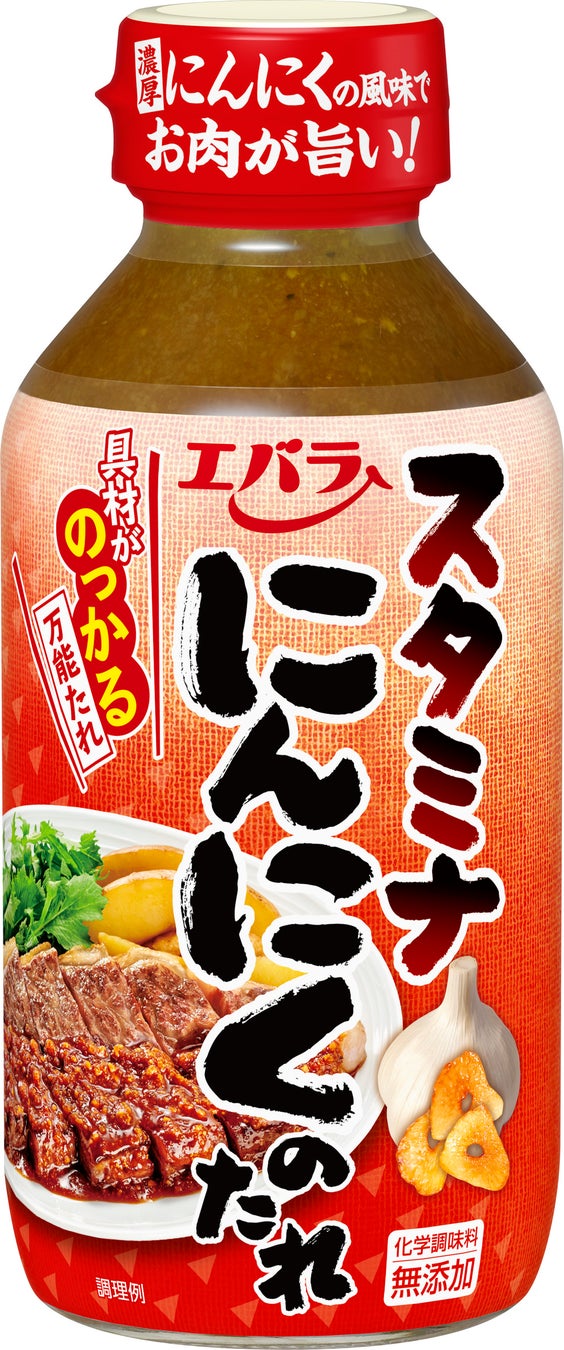 「にんにくのたれ」は、おろしニンニクやローストガーリックなどのニンニク原料の配合量をアップさせ、さまざまなサイズにカットした原料を使用することで、より具材感のある品質へと変更します。ステーキやガーリックライスなどニンニクをガツンと効かせたいメニューに便利にお使いいただけます。