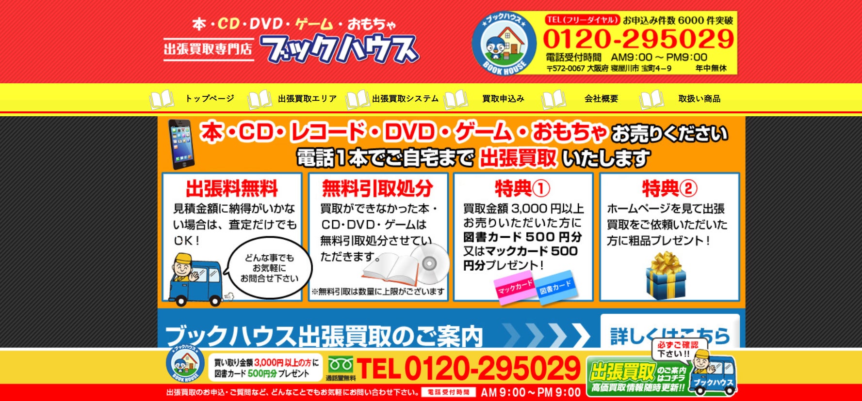 ブックハウスは、大阪府全域で出張費無料の古本買取を行っています。漫画や小説、専門書などの古本はもちろん、CDや家電も買取対象です。