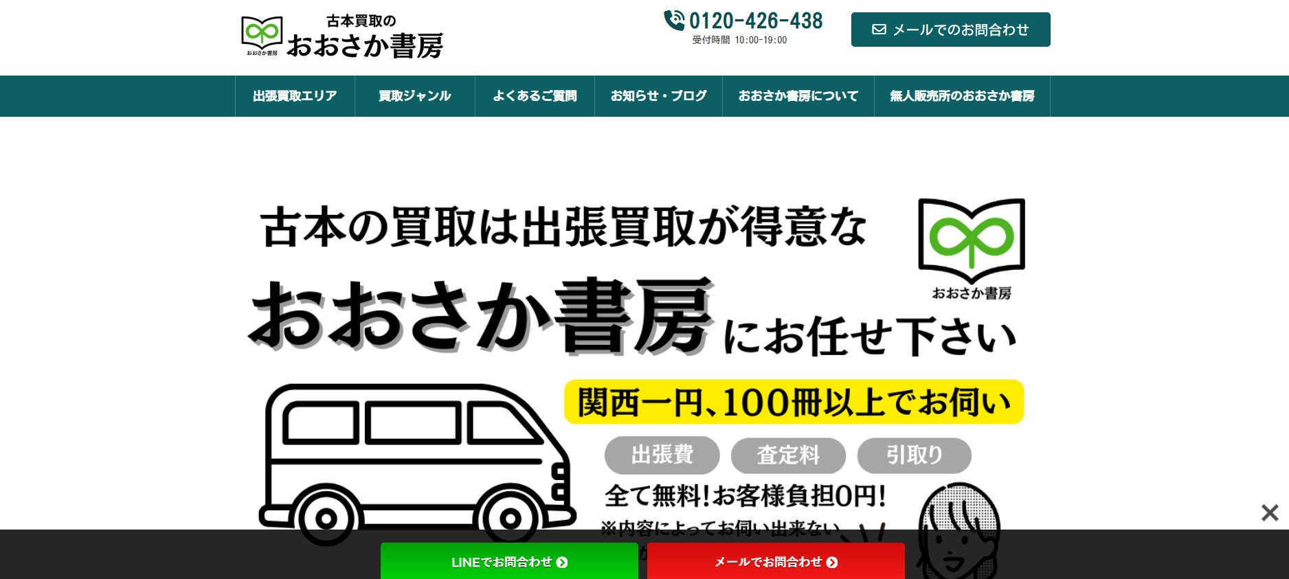 大阪府内には査定・出張ともに完全無料の古本買取店が多いため、選択肢を広げて比較することをおすすめします。