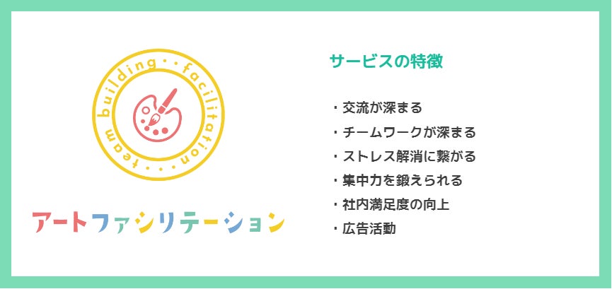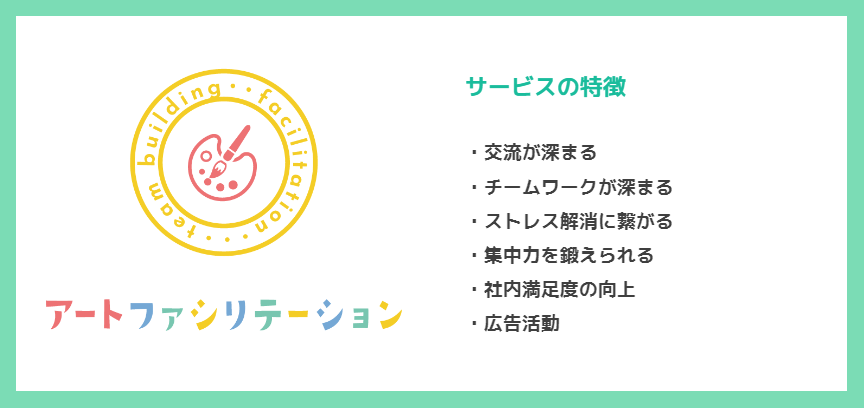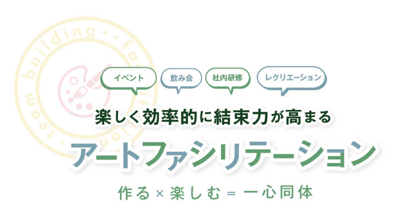 アートファシリテーションは普段はあまり取り組むことのできないアート制作を法人向けチームビルディングに特化してサービス提供しています。専門のアートファシリテーターがチームの輪を形成します。