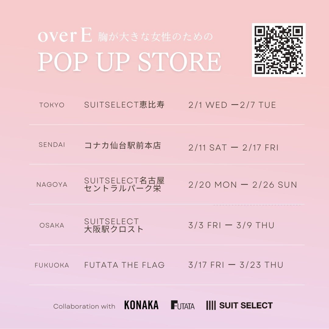 胸が大きな女性のためのブランド「overE」が、東京、仙台、名古屋、大阪、福岡で5連続ポップアップを開催!試着予約も受付中