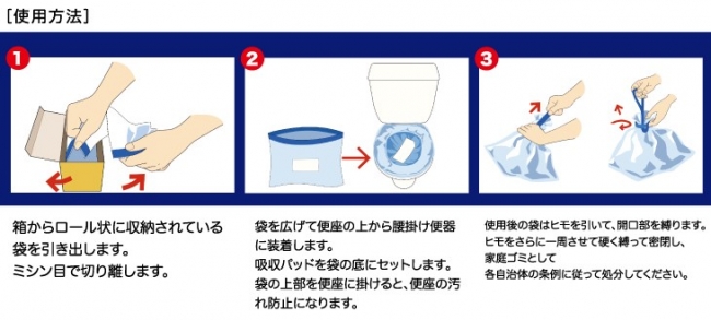 災害の断水時トイレが使えない時にはもちろんのこと、介護・アウトドア・渋滞時などあらゆるシーンでご活用いただけます。
