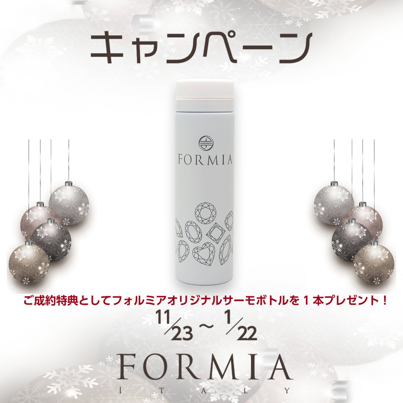 内容:ブライダルフェア開催期間中に当店舗でフォルミア製品をお買い求めいただいた方に、オリジナルサーモボトルを1本プレゼントいたします。