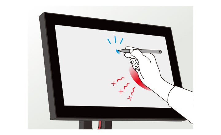 手のひらや手の側面が画面に触れても誤入力を防ぐ「パームリジェクション機能」を搭載。ペン入力時の安定した操作をサポートします。