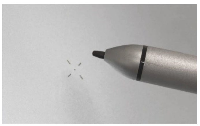 スタイラスの先をモニター画面に近づけると、先端の位置が画面上に表示されるので、狙った位置に書き込みが可能です。