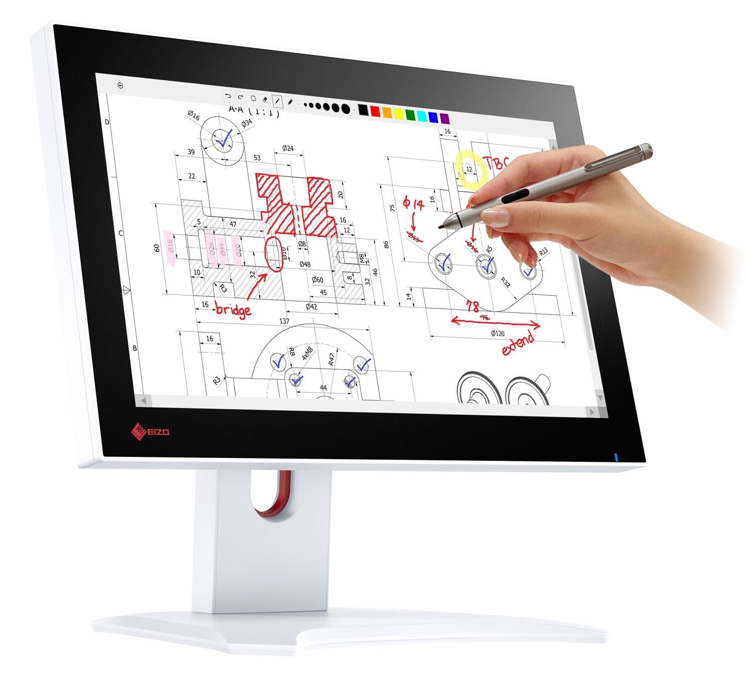 DuraVision FDF1683WT(以下 FDF1683WT)とDuraVision FDF1683WT-AS(以下 FDF1683WT-AS)は、10点マルチタッチに対応し、ドラッグ・フリックなどの動作がスムーズに行えるほか、ペン入力にも対応する「PCAP(投影型静電容量)方式」を採用。文字や図の書き込みを行うさまざまな場面で活用できます。