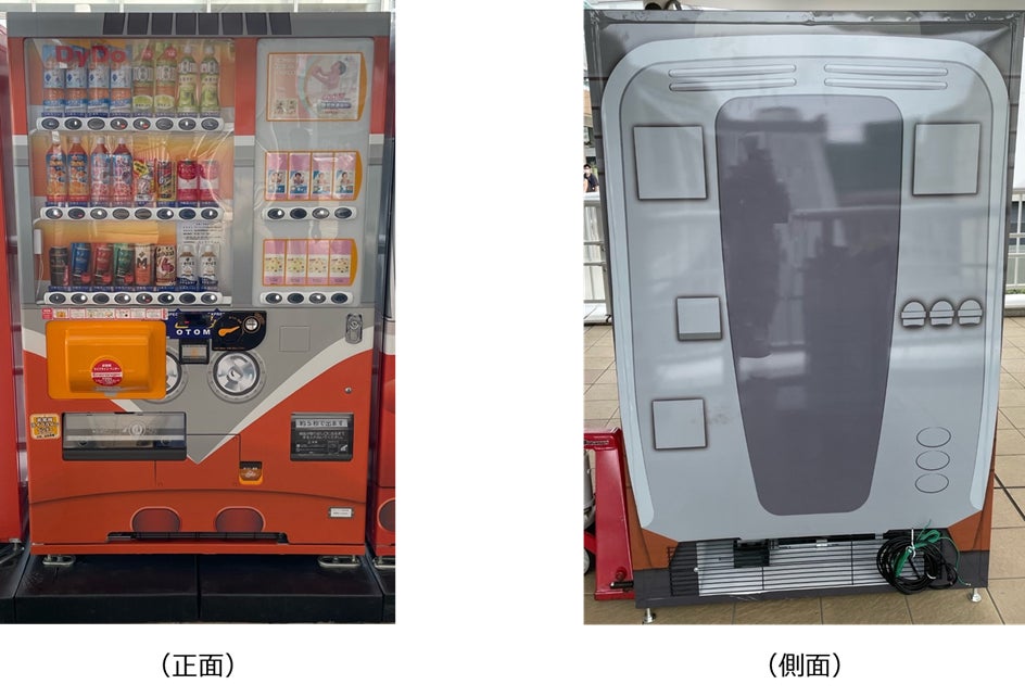 本自販機は、昨年開業したロマンスカーミュージアムを更に盛り上げようと企画した自販機で、昨年の設置後、大変ご好評をいただき、今回、新たに増設することとなりました。デザインは、これまで活躍したロマンスカーのうちSE(3000形)をモチーフに、背面にも車両連結部のデザインを施しております。さらに、子育て世代の方々が紙おむつの心配をすることなく来訪できるよう、ベビー用 紙おむつの小パック(2枚入り)が購入できる飲料とコラボした自販機となっております。