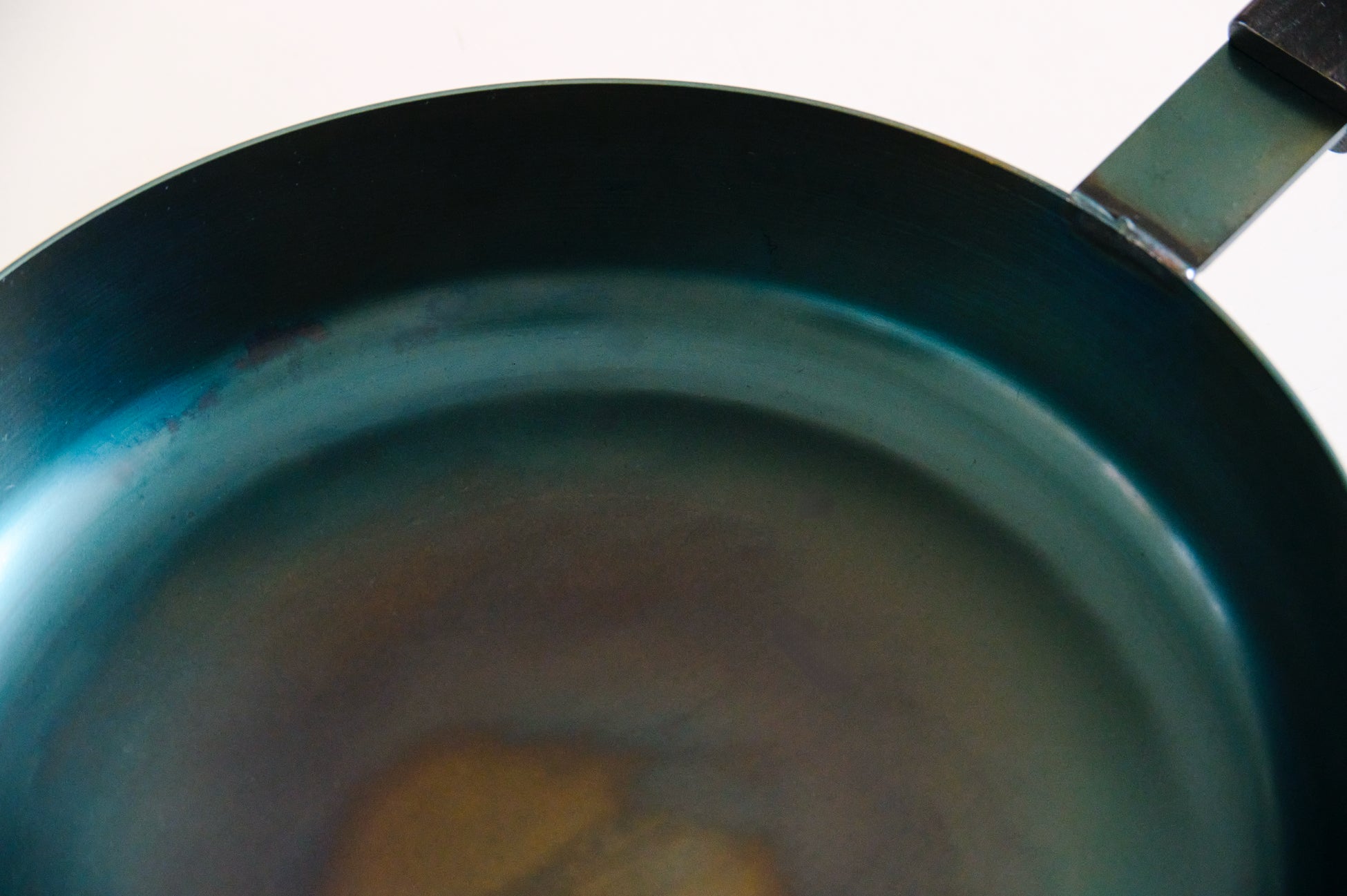 約700℃になるまで鉄板を焼き付け、油を塗り込み使い始めから鉄板に油が馴染んだ状態にする加工を施しています。使い始めの「空焼き・油ならし」が不要で、サビにくく、焦げ付きにくい特徴があります。