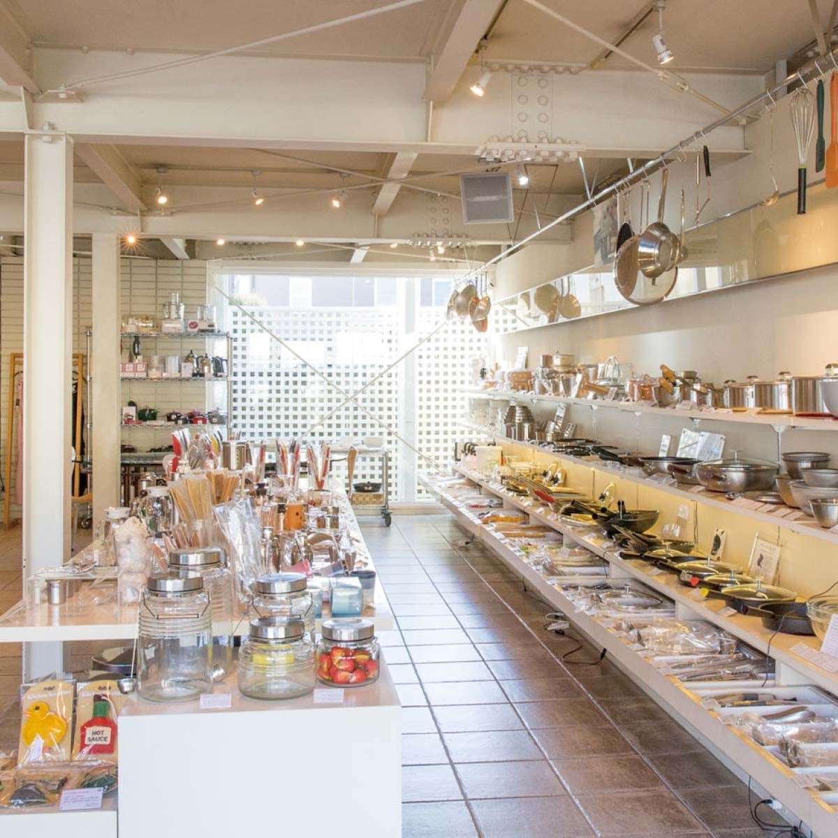 アットホームな空間に、1,800種類を超える選び抜かれた調理器具を販売しています。