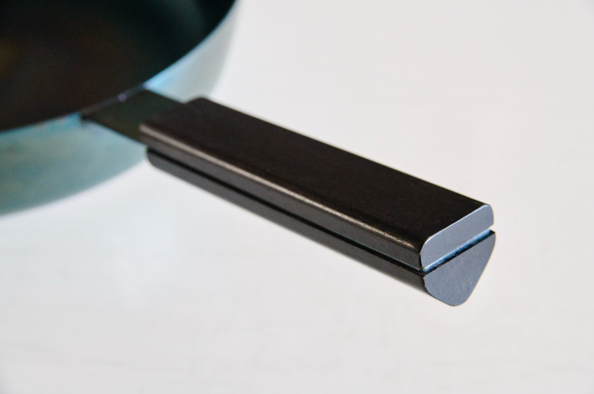 ハンドルの持ち手部分を熱くなりにくい木製を採用しました。形状も逆三角形にし、持ちやすく、手に馴染みやすいのが特徴です。