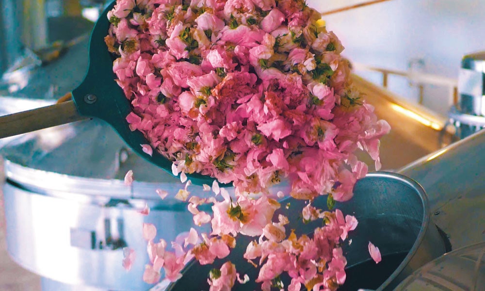 機械を使わず手で摘み取られたダマスクローズは、ミネラルが豊富な温泉水で蒸留されます。何世代にもわたる伝統的な方法と現代科学を組み合わせた独自の蒸気蒸留法によって バラの生物エネルギーを保持した、非常に豊かで素晴らしい香りのローズオイルが得られます。