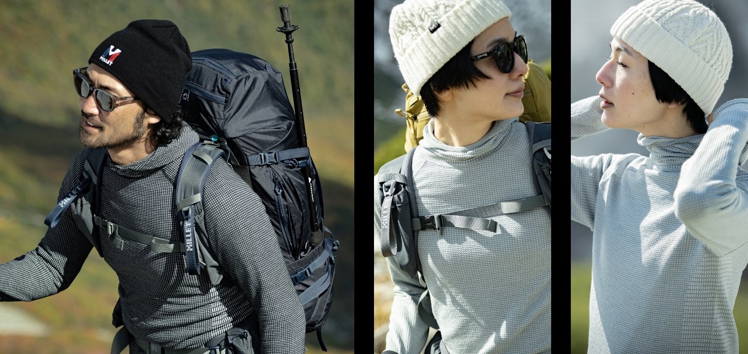 1921年創業のフランスを代表するアルパインブランド “ミレー” (ミレー・マウンテン・グループ・ジャパン:東京都品川区、代表取締役:ペア・ラスムセン)は、高品質の極細メリノウール(70%)と化繊の混紡素材を、先進のコンピューター編みによってワッフル形状に編み上げたベースレイヤー “ワッフル ウール”のラインナップを拡充し、2024年8月30日より発売いたしました。 (https://www.millet.jp/brand/feature/thermal/)