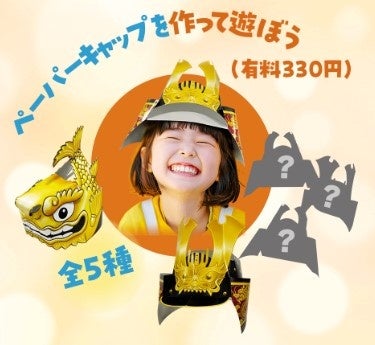 また、本館2階ロビーでは、兜をテーマにしたペーパーキャップ作り(有料)を体験することができます。全5種のデザインから好きなものを選んで、お気に入りの兜を作ろう!