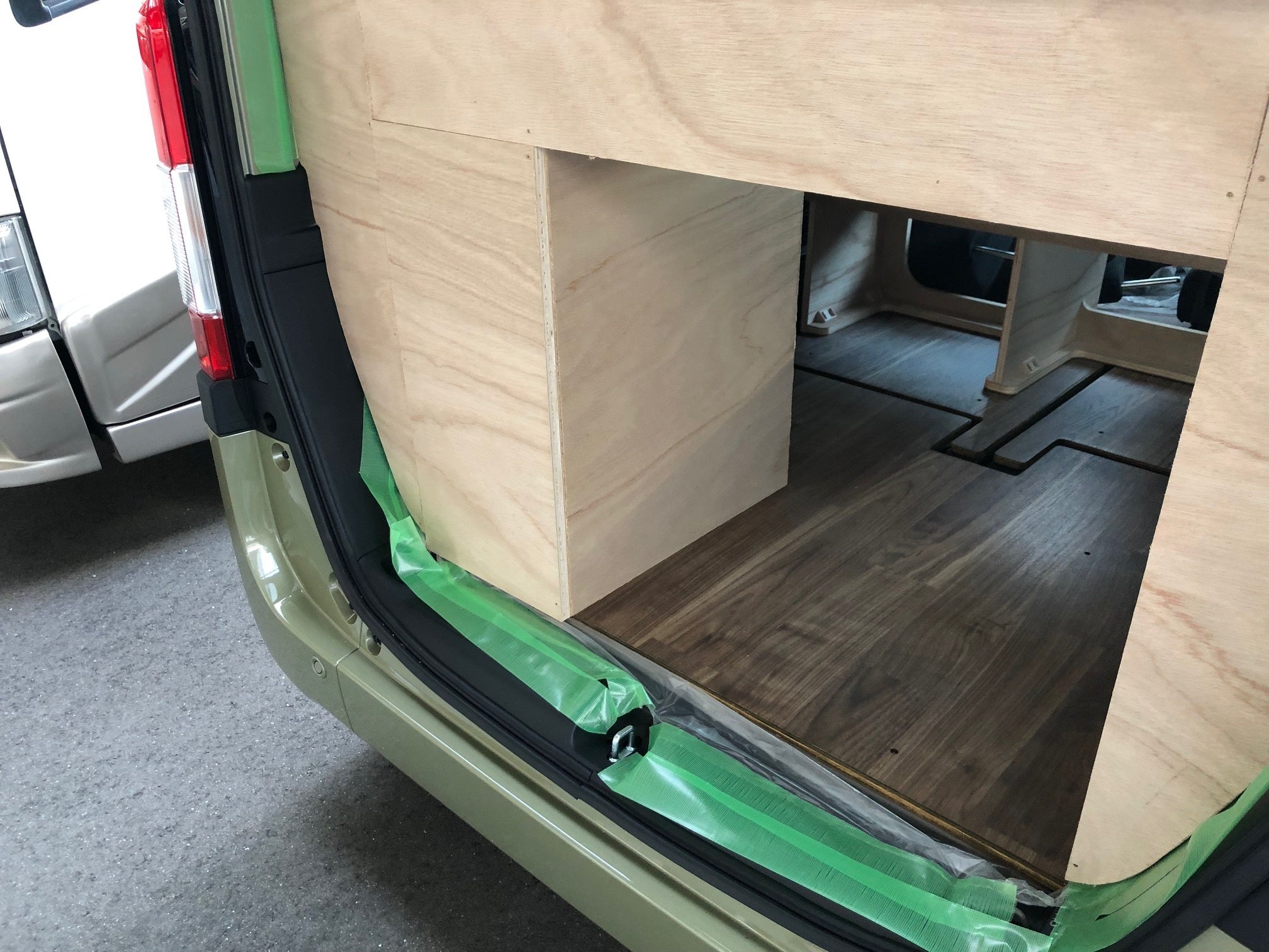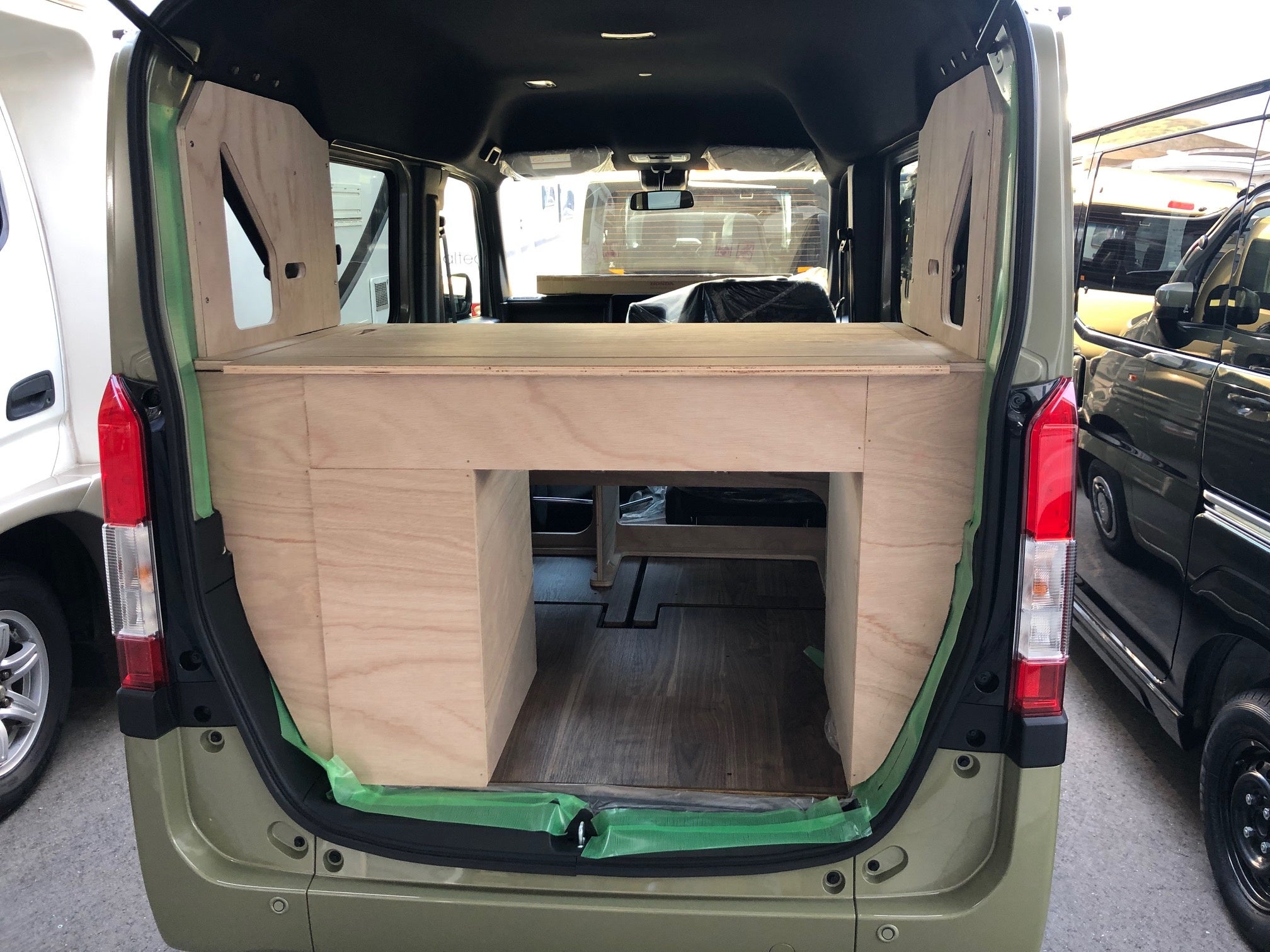 N-VANは、軽自動車の中でも特に車両内部の広さと高さがある車で圧迫感を感じさせません。そのメリットを最大限生かし、広々とした開放的なデスクで伸び伸びと働ける空間を目指しました。デスクやベンチの細かい寸法や使い勝手、耐久性、シートを倒して使うときのパーツの収納方法など、実物大の模型を作って検証しながら製作を進めています。