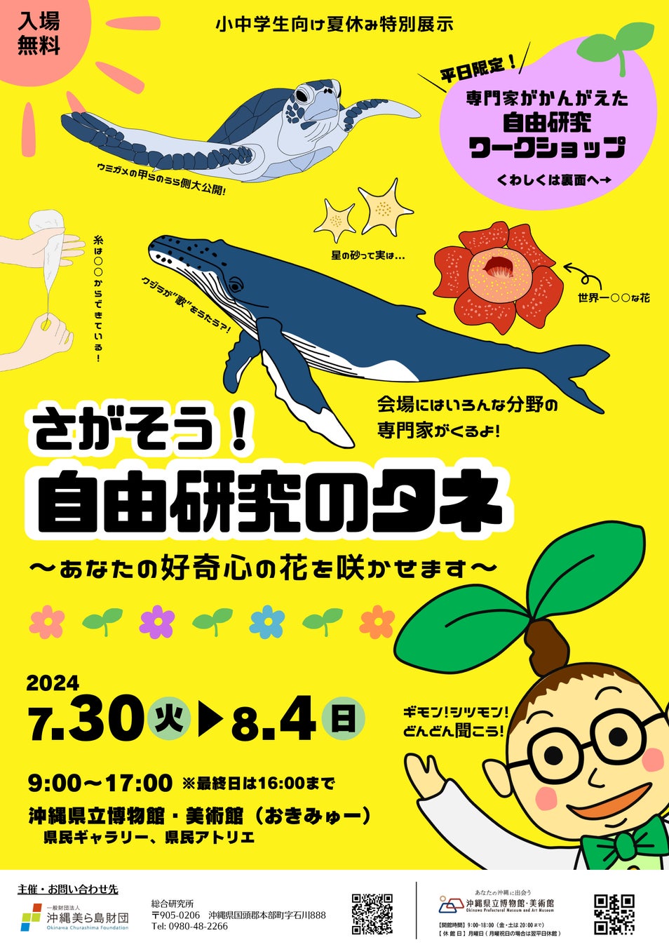 【(一財)沖縄美ら島財団】夏休み特別展示「さがそう!自由研究のタネ~あなたの好奇心の花を咲かせます~」7/30~8/4開催!