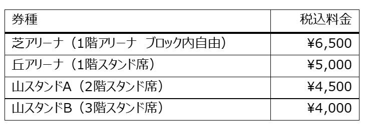 ※芝アリーナ、丘アリーナ席は特典付きとなります。