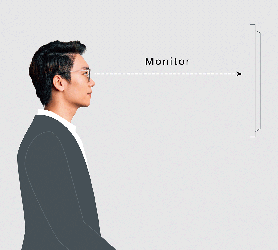 ※距離や角度が適切でない場合、姿勢や視線の使い方は不自然になり、見えない、疲れる、肩が凝るという症状の原因になる可能性も。