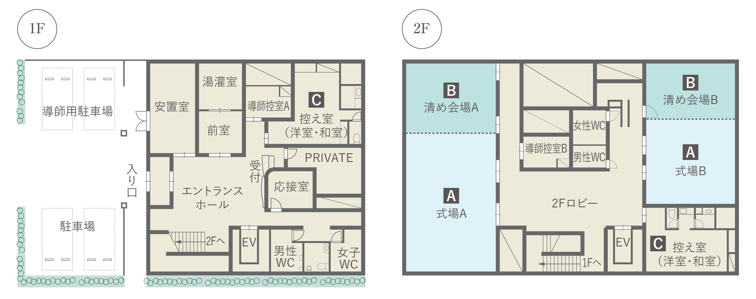 ・親族控室 2室(各室 リビング6畳・和室6畳・浴室・トイレ・洗面所・ミニキッチン)