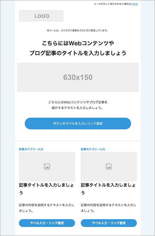 Webコンテンツやブログ記事への誘導を支援するデザインです。メインコンテンツの訴求に加え、複数のコンテンツを同時に紹介するためのレイアウトが含まれています。