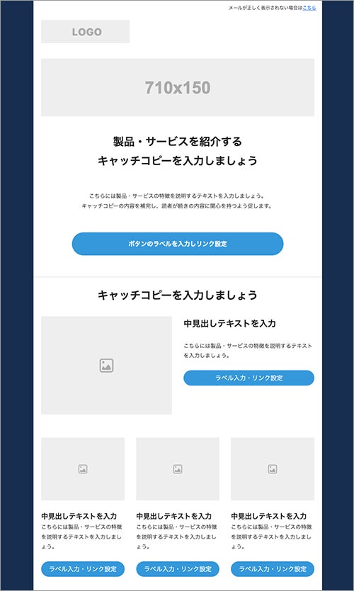 当社はメール配信システム「WiLL Mail」において、メール作成をより効率的に行える新しいHTMLメールのデザインテンプレートを4種類追加いたしました。ユーザーの皆さまは、テンプレートの中から自社の訴求内容に最適なデザインをHTMLメールエディタに取り込むことで、メール作成にかかる時間を大幅に削減し、効果的な情報発信が可能となります。