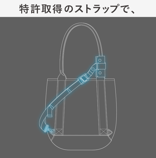 特許取得のストラップを搭載!バッグを身体にしっかりと固定