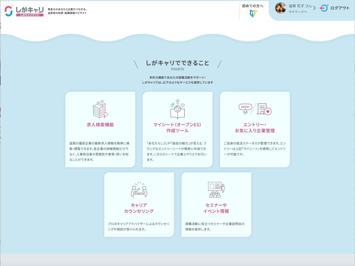 滋賀県内の150社が参加する県内最大級の就活イベント「しがジョブフェスティバル」や、滋賀県の中でも長浜・彦根という、滋賀県内のローカルなエリアに特化したイベント「ローカルジョブコレクション」など、滋賀県の雇用促進・新卒採用を行政とともに推進してきた。