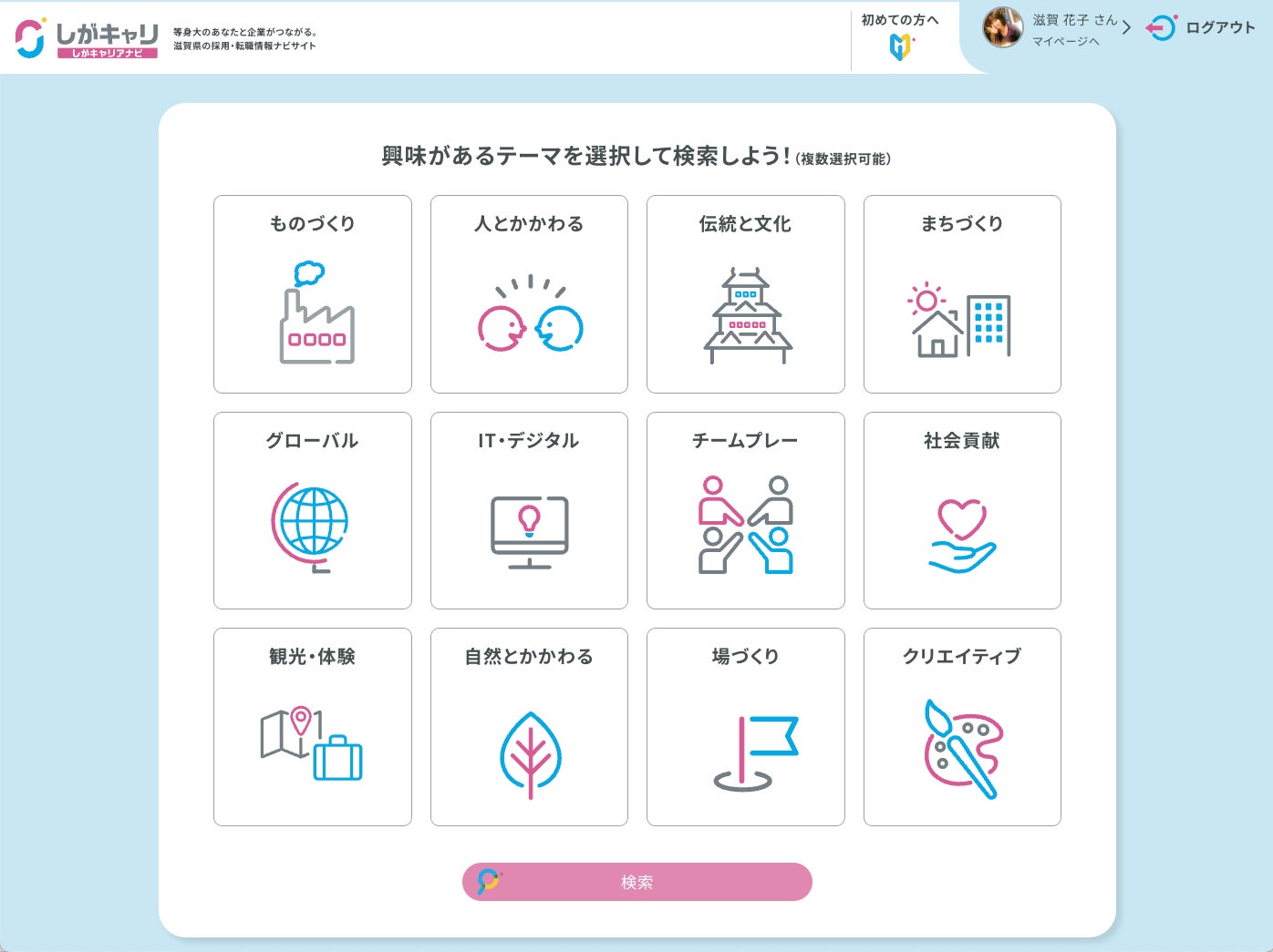 滋賀の産業を支える様々な分野の企業と、滋賀県内での就職・Uターン就職をしたいという学生のマッチングが可能となります。また、職種や業種にとらわれない企業検索を取り入れることにより、等身大で学生と企業がマッチングすることができる新たな形を提供します。地方の雇用促進とともに、若い世代がいきいきと自分らしく働くことで企業や地域の発展を目指します。