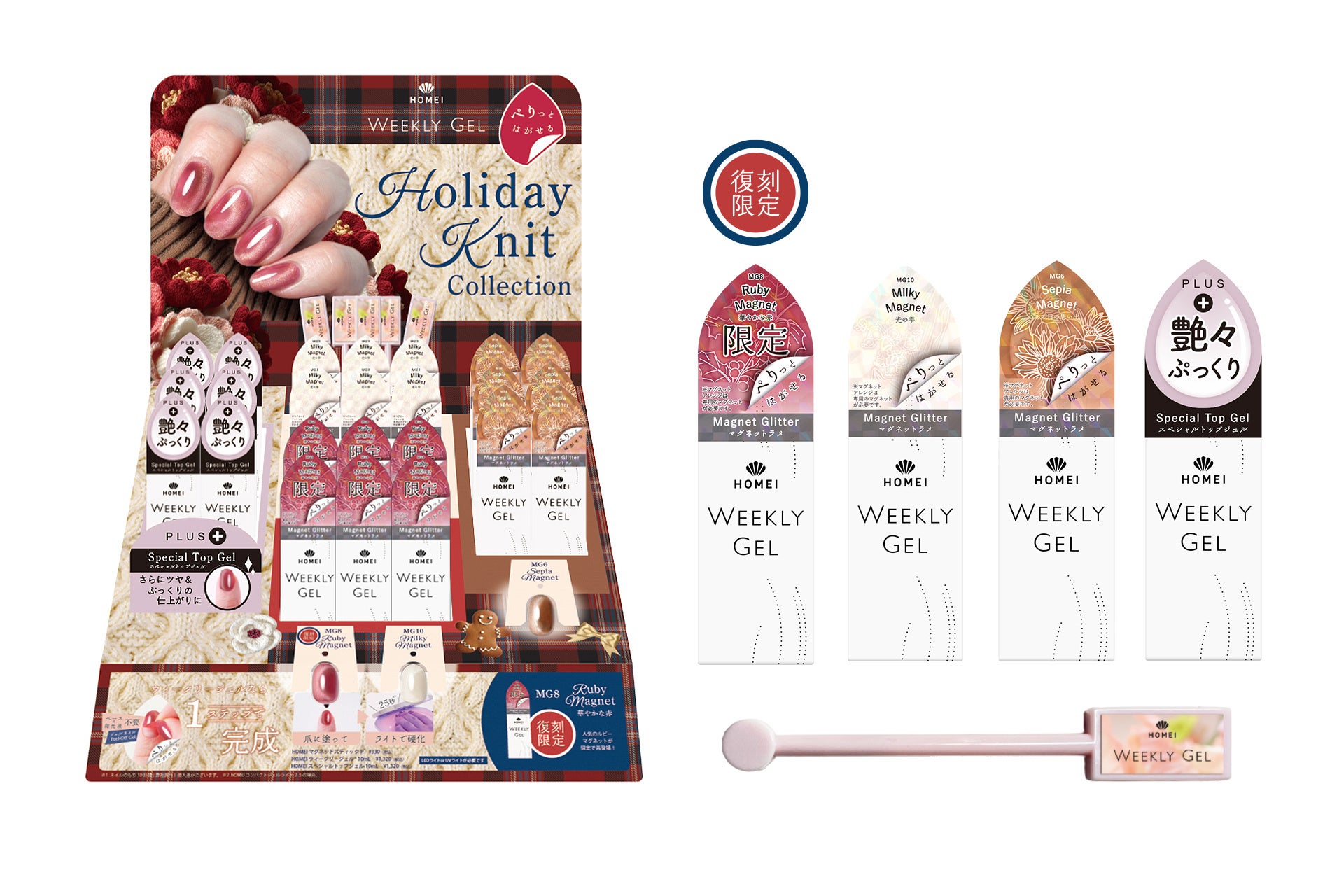 “Self Nail Decoration”(指先から自分らしくときめく)をコンセプトに、セルフネイル市場をリードしてきたHOMEI(株式会社グルーブ:大阪市生野区 代表:川端一弘)は、人気シリーズで気軽にセルフジェルネイルを楽しめる「HOMEI ウィークリージェル」より、冬の限定色を11/20(木)午前10時より公式オンラインショップ( https://homei-nail.jp/ )にて先行発売、11月末より順次全国のバラエティストアにて発売いたします。 ※店舗により展開時期が異なります。