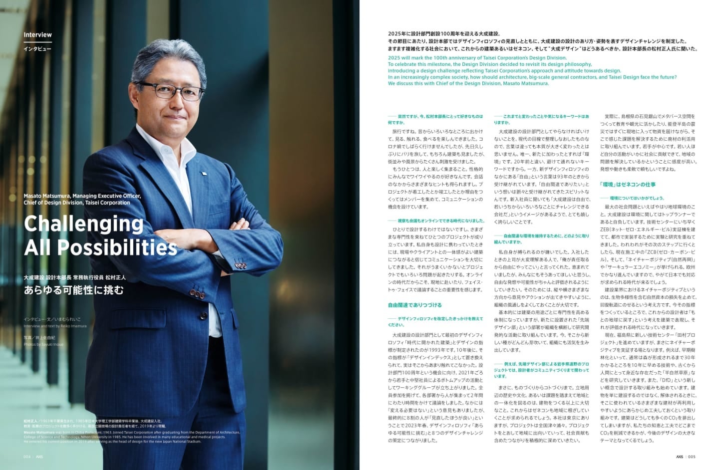 株式会社アクシス(東京都港区 代表取締役社長:朝香信雄)は、この度、2025年4月1日に発売したデザイン誌「AXIS」vol.232の増刊号として、「大成建設 設計本部 あらゆる可能性に挑む」を発行いたしました。