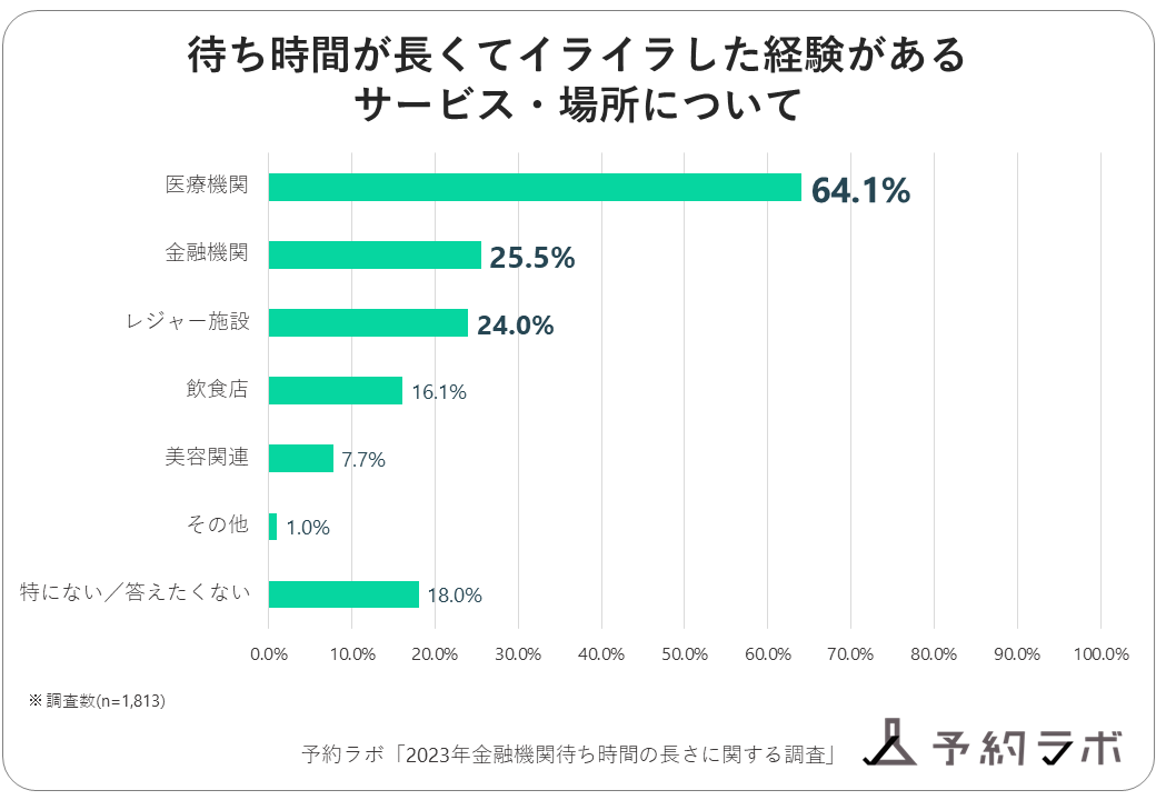待ち時間が長くてイライラした経験があるサービス・場所についての調査