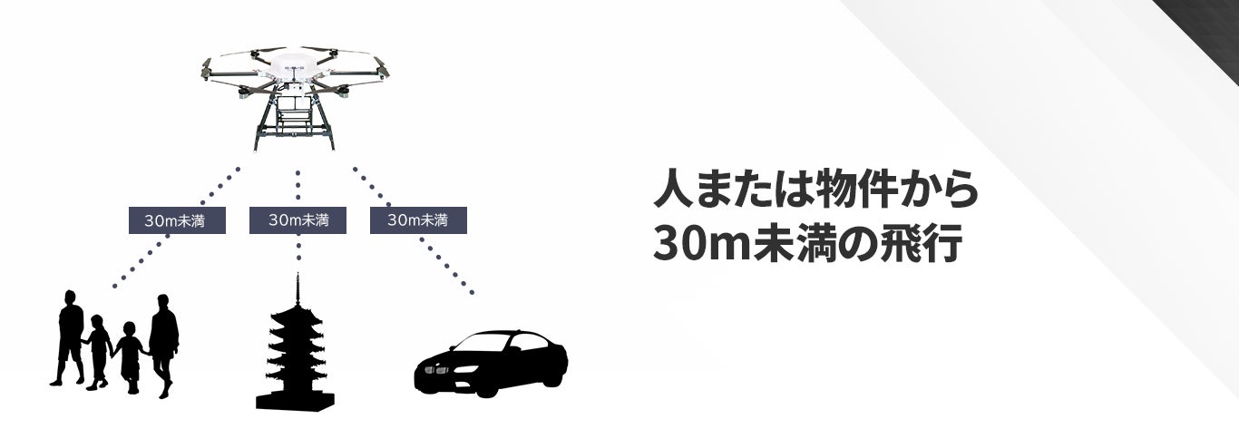 ※本製品を使用しての特定飛行については、航空法第132条の16第2項第2号により立入禁止措置を講ずることなく特定飛行を行うことは禁じられています。そのため、本製品を使用しての特定飛行を行う場合には立入管理措置を講じること、また、飛行経路や離着陸地点等、飛行エリアに第三者の侵入がないことを確認/監視することが前提です。