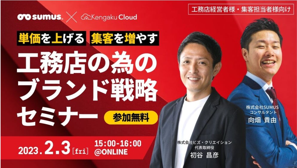 イベント名:【SUMUS×KengakuCloud】「単価を上げる」「集客を増やす」工務店の為のブランド戦略セミナー