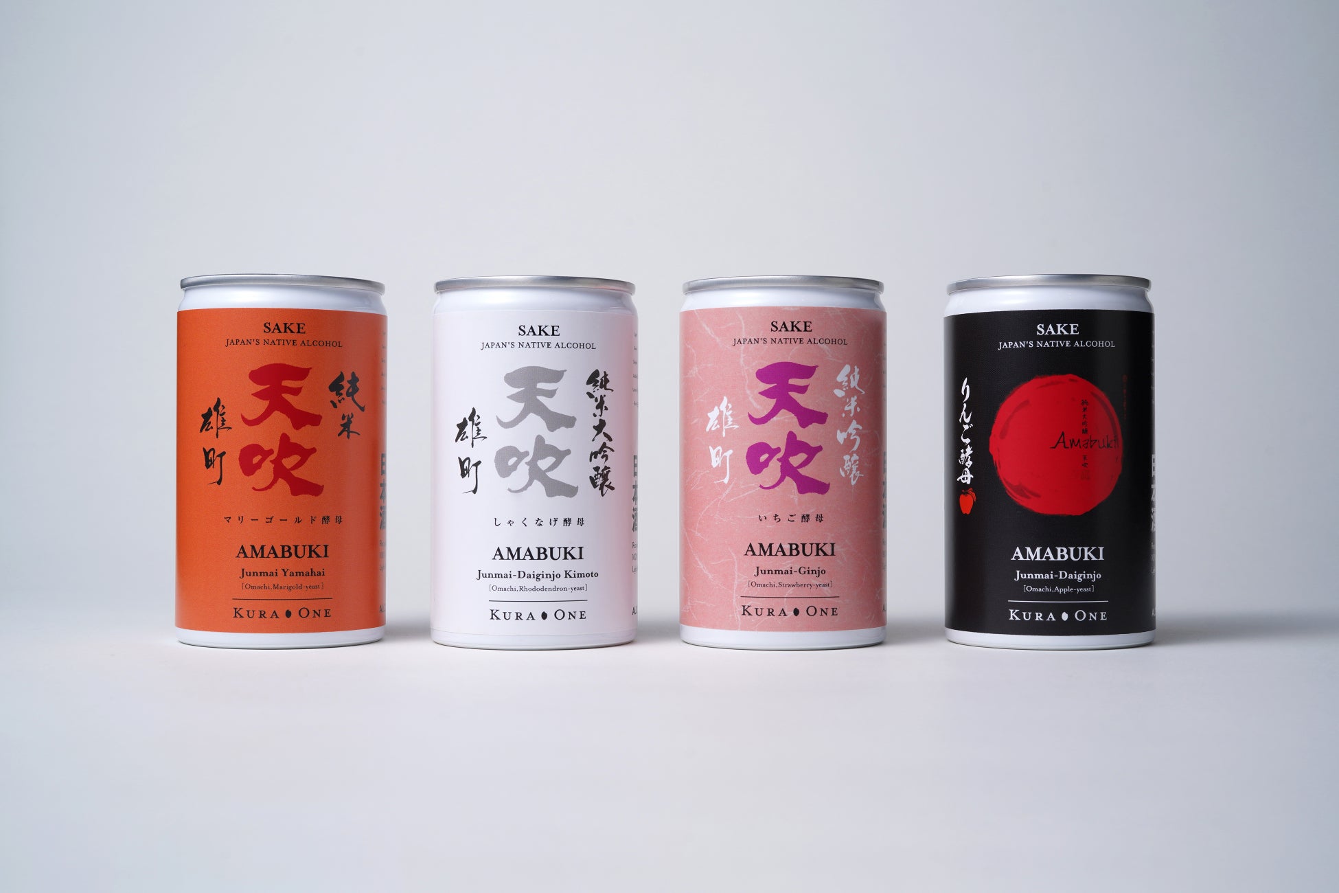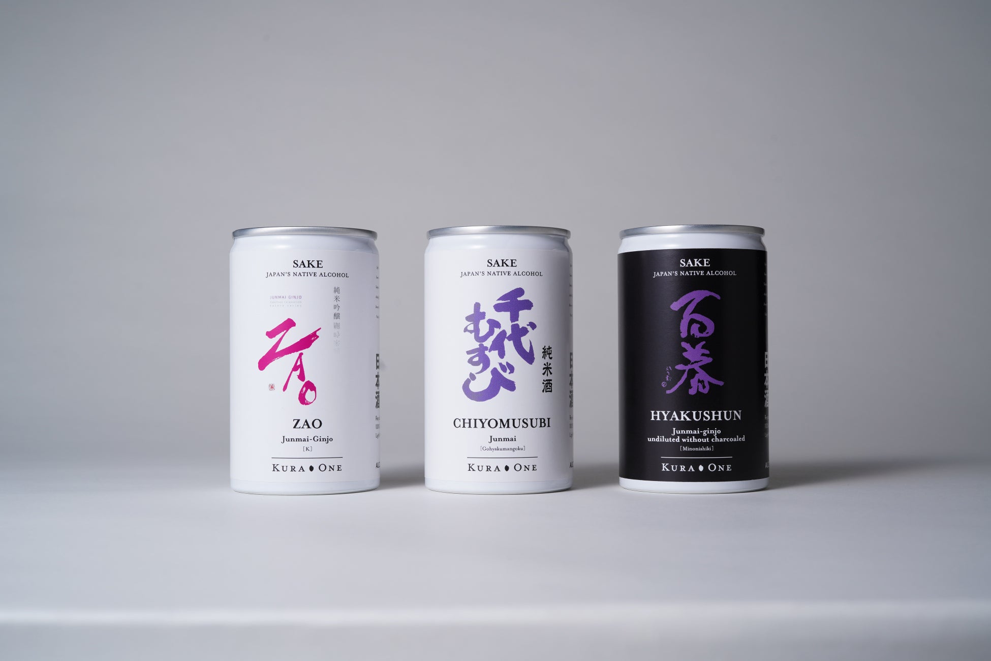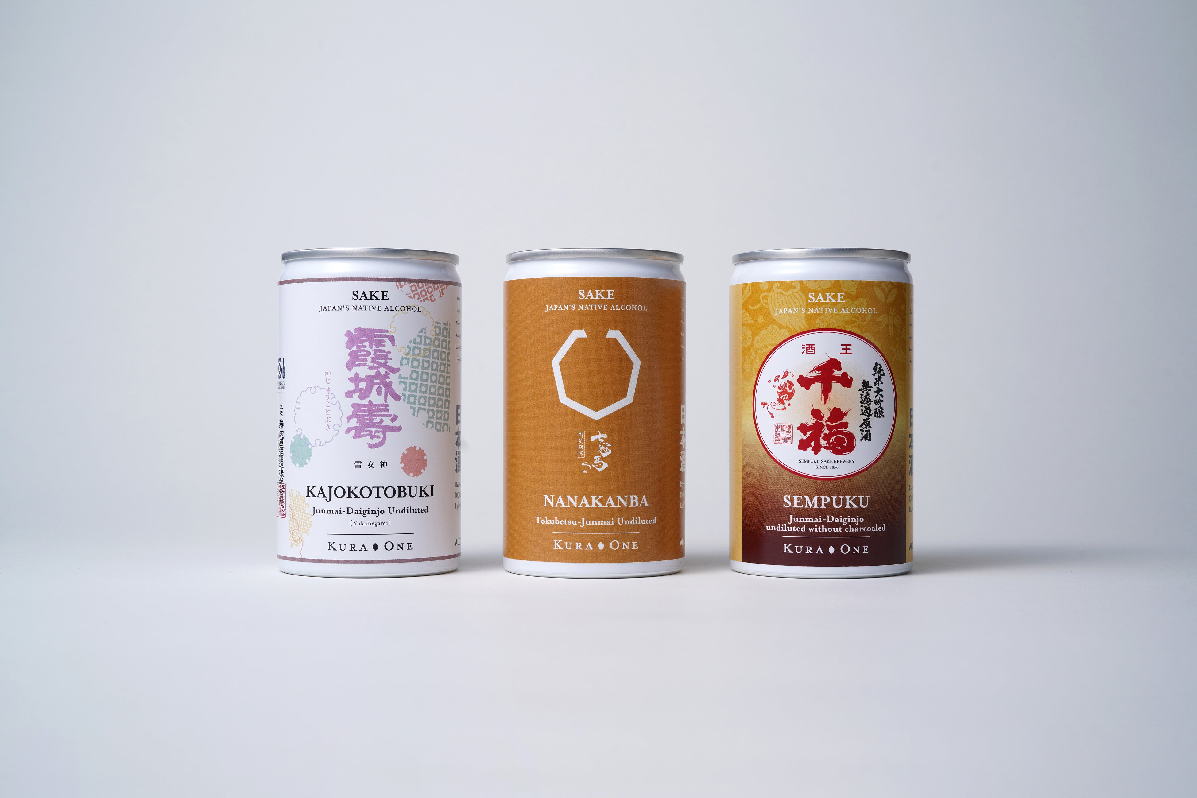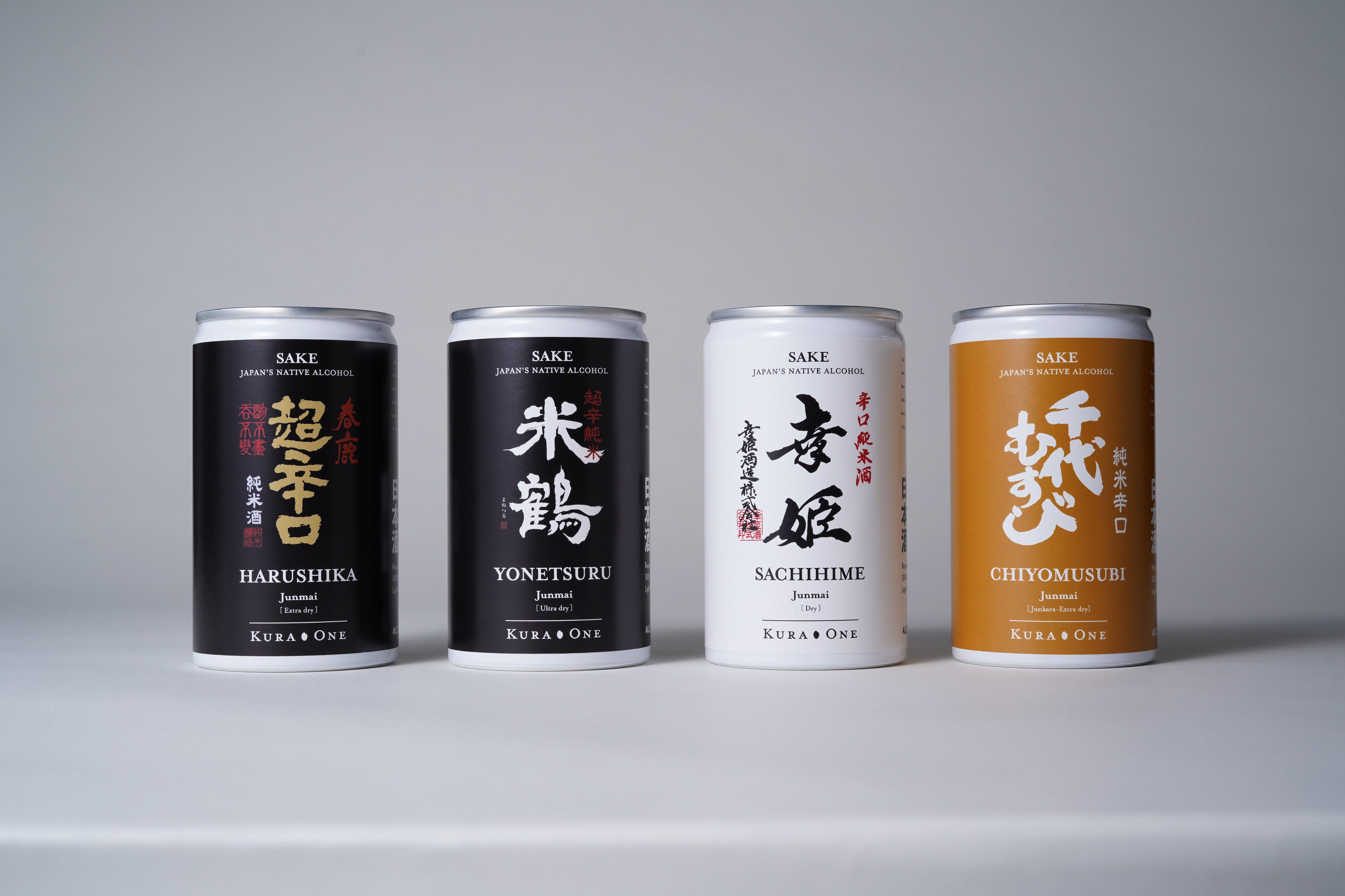 KURA ONEは国内外で受賞歴のある酒蔵が醸す日本酒から厳選し、「KURA ONEコレクション」として商品化します。KURA ONEの目的は、日本酒の世界市場におけるブランド化、そして、小さな酒蔵のファンを世界中で発掘し、酒蔵と消費者が直接つながる世界です。そのため、酒蔵承認のもと市場流通している720mLのお酒を同じ酒質のまま180mL缶に充填し、KURA ONEとして一貫したデザインレイアウトの中に、個々の銘柄を連想させるラベルデザインを取り入れています。KURA ONEコレクションは、酒蔵公認の180mLアルミ缶なのです。