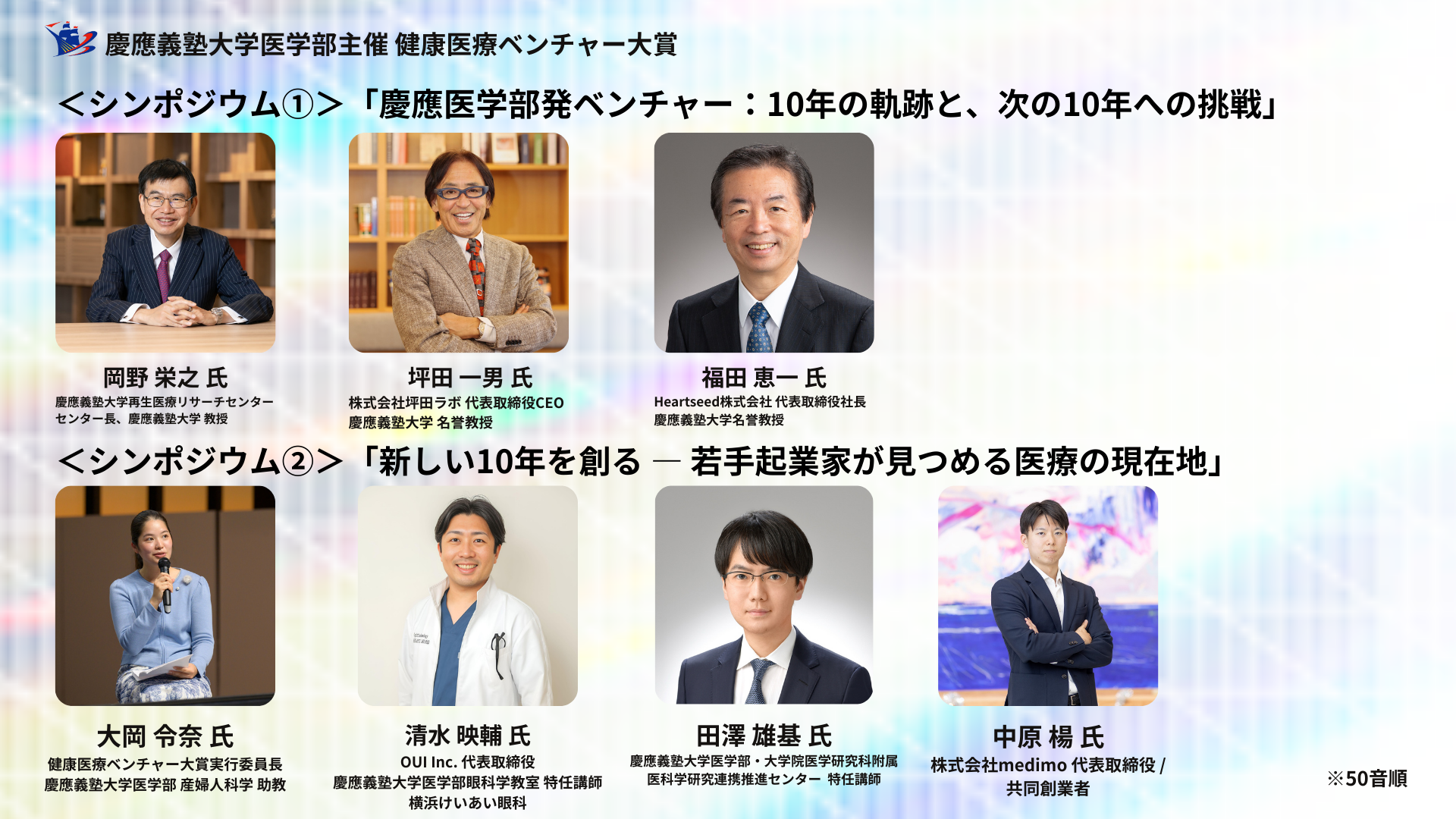 ①テーマ:「慶應医学部発ベンチャー:10年の軌跡と、次の10年への挑戦」
